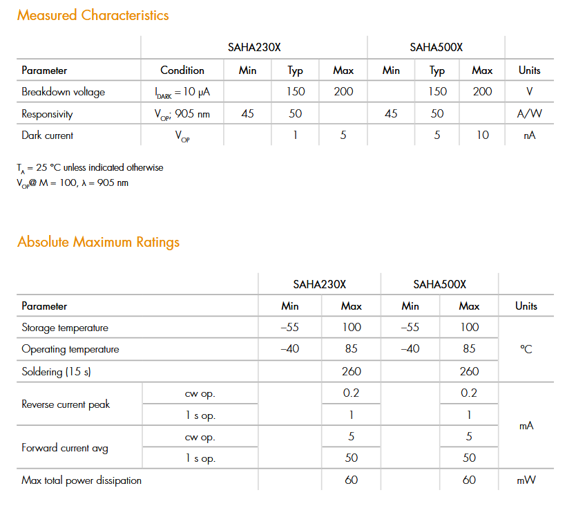 Laser Components SAHA500Mx 雪崩光电二极管