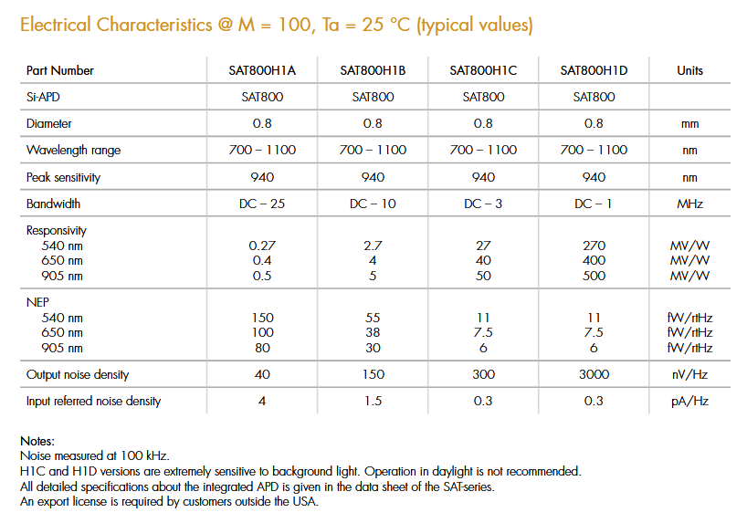 Laser Components SAT800H1x 雪崩光电二极管