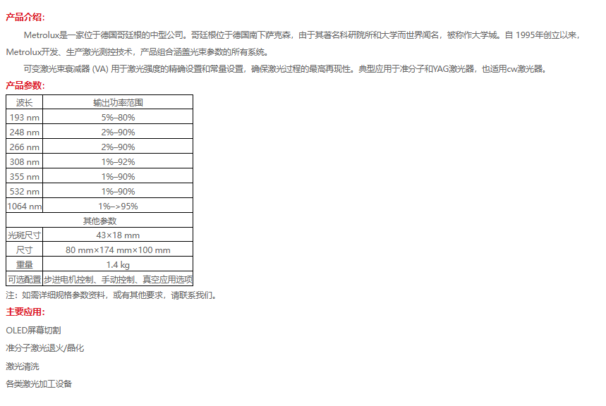 Metrolux 248 nm波长 激光衰减器 手机/微信:13682357549 13246646513 QQ:672776553 564600083 1903656788 Email:672776553@qq.com 564600083@qq.com