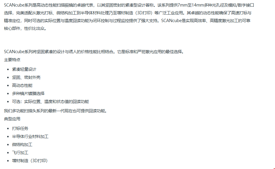Scanlab SCANcube IV 10mm SCANcube系列振镜