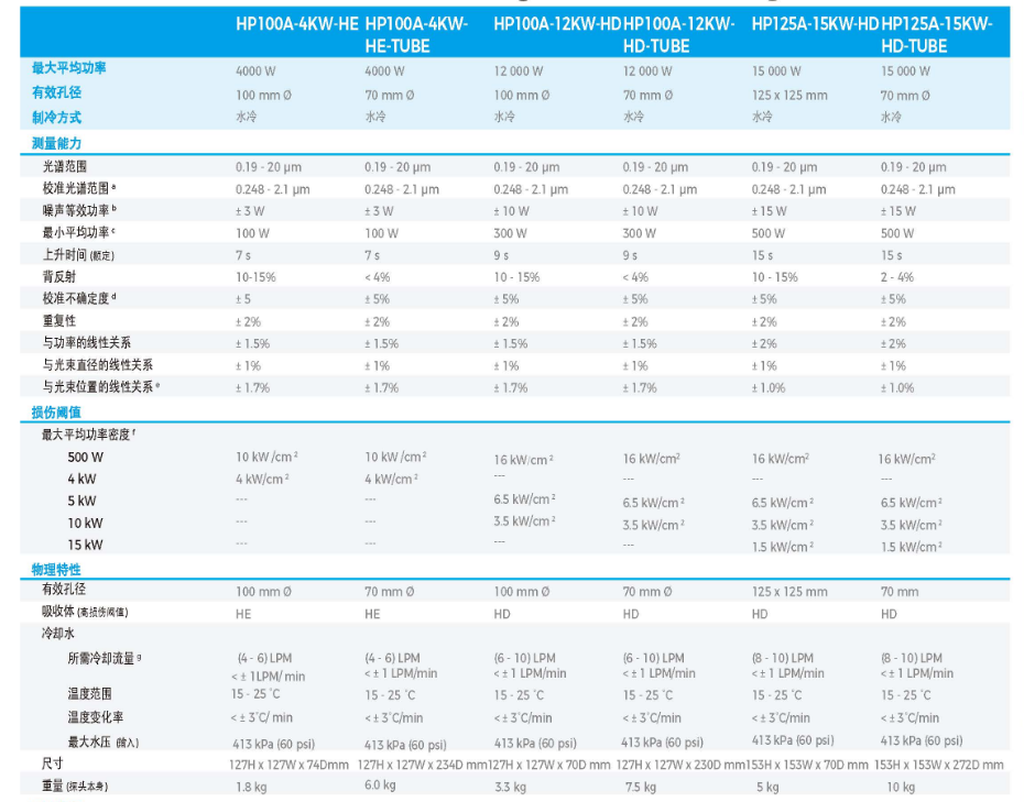 激光功率计HP100系列 HP100A-12KW-HD-TUBE
