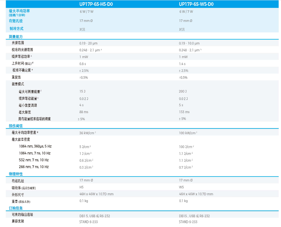 激光功率计UP17-H W系列 UP17P-6S-H5-D0
