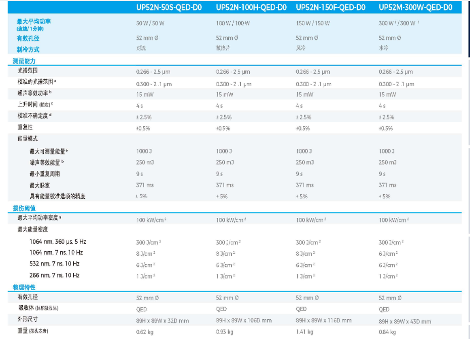 激光功率计UP52-QED系列 UP52N-300W-QED-D0