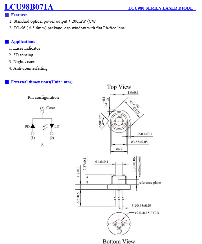 Laser Components LCU98B071A 光电二极管 手机/微信:13682357549 13246646513 QQ:672776553 564600083 1903656788 Email:672776553@qq.com 564600083@qq.com