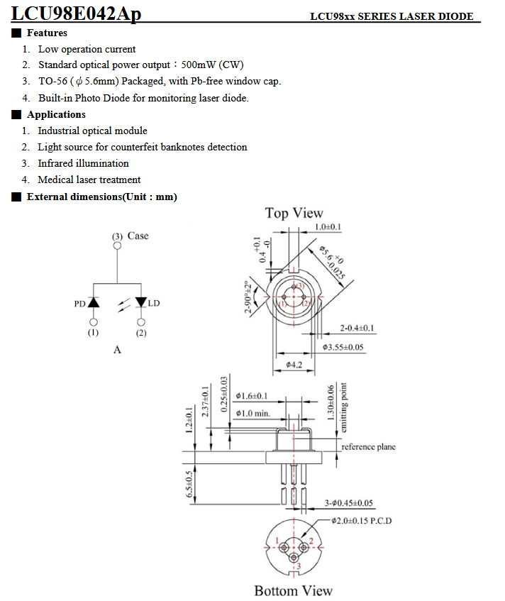 Laser Components LCU98E042Ap 光电二极管 手机/微信:13682357549 13246646513 QQ:672776553 564600083 1903656788 Email:672776553@qq.com 564600083@qq.com
