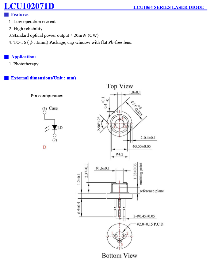 Laser Components LCU102071D 光电二极管 手机/微信:13682357549 13246646513 QQ:672776553 564600083 1903656788 Email:672776553@qq.com 564600083@qq.com