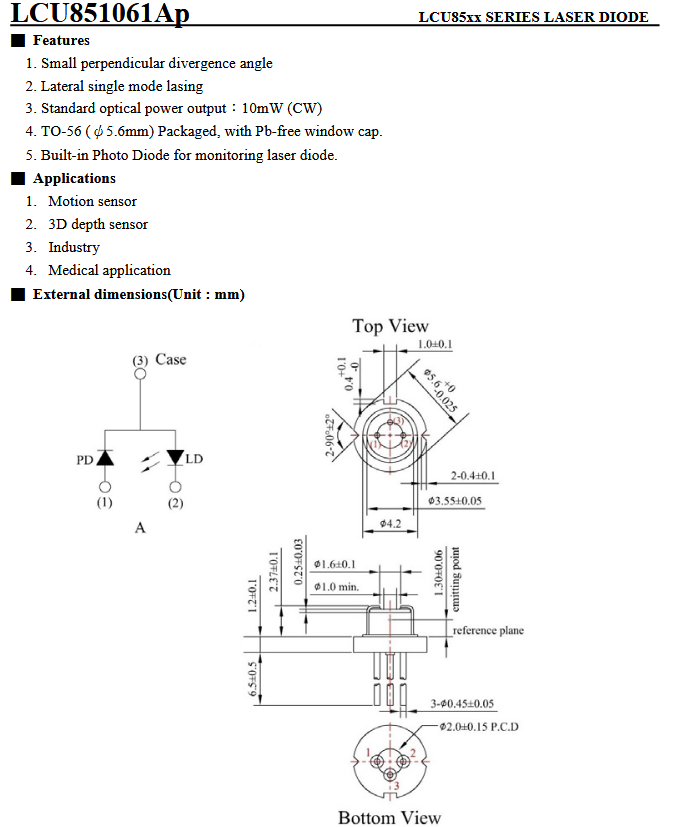 Laser Components LCU851061Ap 光电二极管 手机/微信:13682357549 13246646513 QQ:672776553 564600083 1903656788 Email:672776553@qq.com 564600083@qq.com
