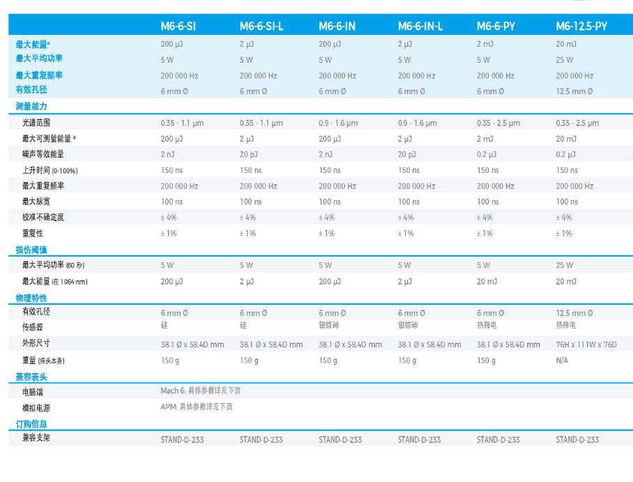 激光能量计MACH 6系列 M6-6-SI-L
