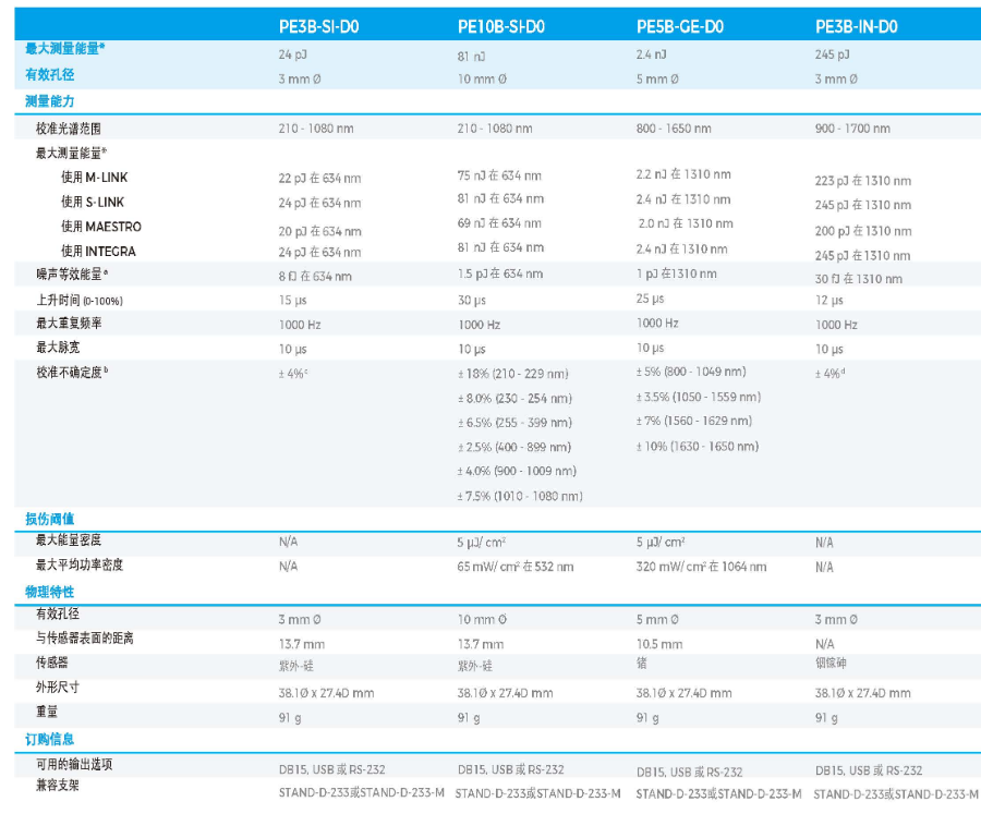 激光能量计PE系列 PE3B-IN-D0