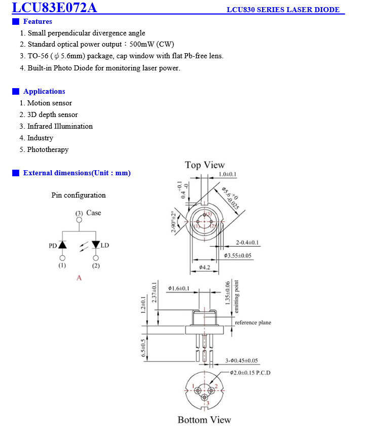 Laser Components LCU83E072A 光电二极管 手机/微信:13682357549 13246646513 QQ:672776553 564600083 1903656788 Email:672776553@qq.com 564600083@qq.com