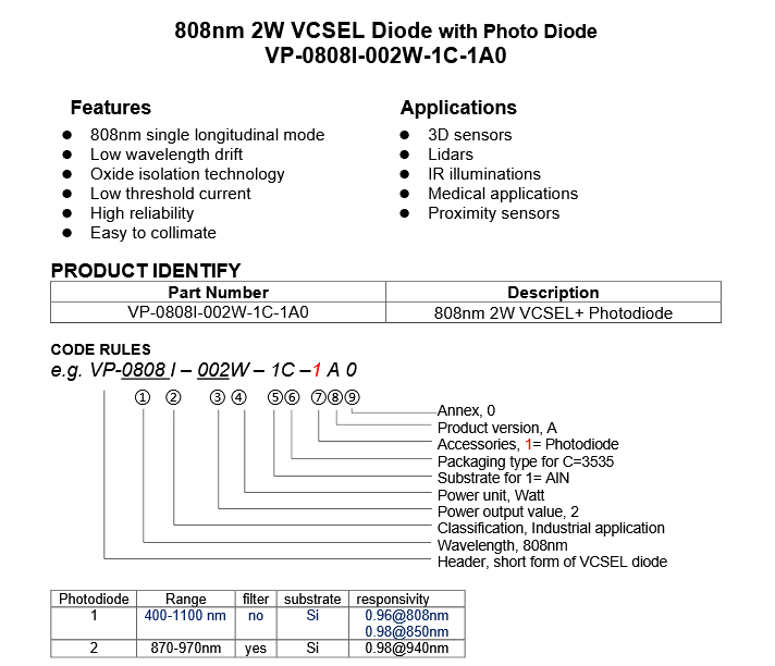 Laser Components VP-0808I-002W-1C-1A0 光电二极管