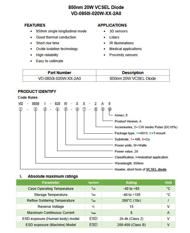 Laser Components VD-0850I-020W-XX-2A0 光电二极管