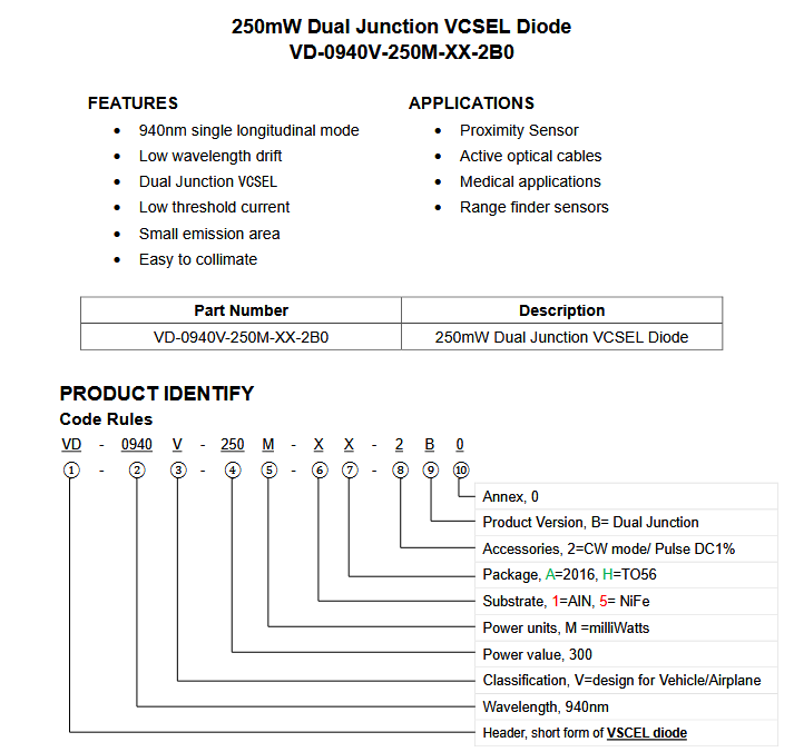 Laser Components VD-0940V-250M-XX-2B0 光电二极管