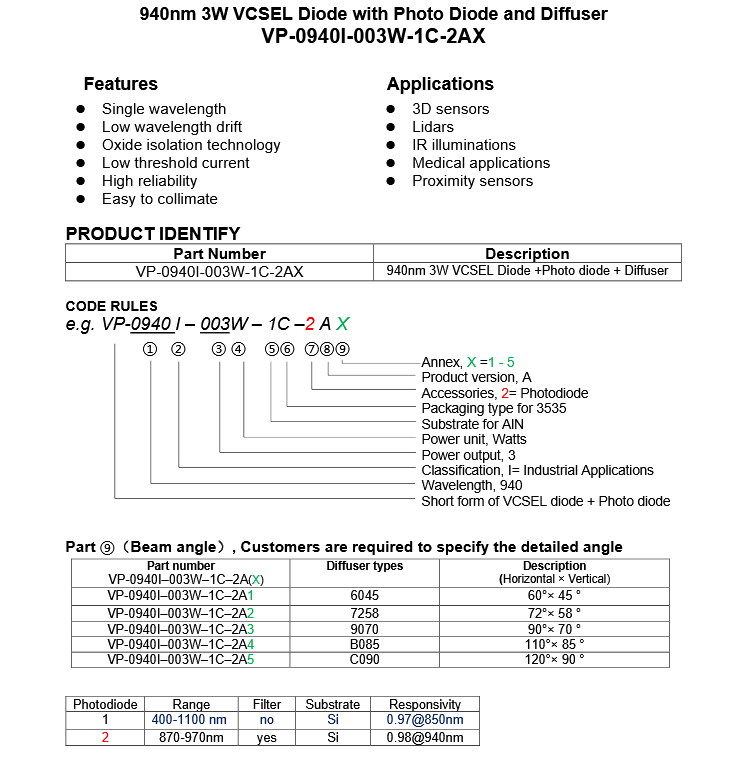 Laser Components VP-0940I-003W-1C-2AX 光电二极管 手机/微信:13682357549 13246646513 QQ:672776553 564600083 1903656788 Email:672776553@qq.com 564600083@qq.com