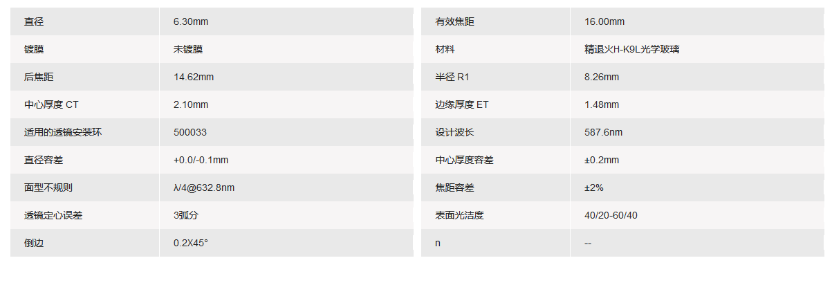 GRAND UNIFIED联合光科 D=6.30mm F=16.00mm K9平凸透镜 手机/微信:13682357549 13246646513 QQ:672776553 564600083 1903656788 Email:672776553@qq.com 564600083@qq.com
