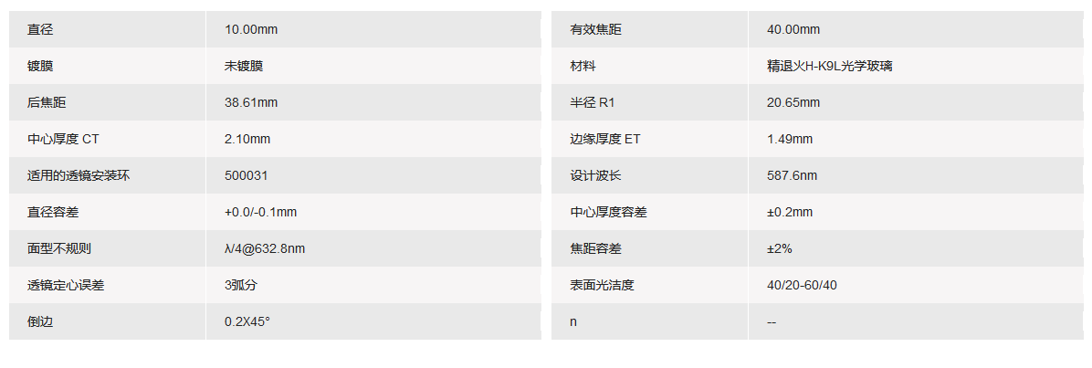 GRAND UNIFIED联合光科 D=10.00mm F=40.00mm K9平凸透镜 手机/微信:13682357549 13246646513 QQ:672776553 564600083 1903656788 Email:672776553@qq.com 564600083@qq.com