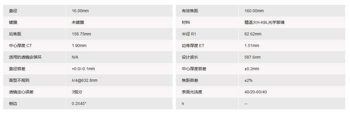 GRAND UNIFIED联合光科 D=16.00mm F=160.00mm K9平凸透镜