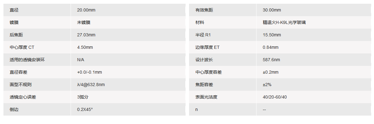 GRAND UNIFIED联合光科 D=20.00mm F=30.00mm K9平凸透镜 手机/微信:13682357549 13246646513 QQ:672776553 564600083 1903656788 Email:672776553@qq.com 564600083@qq.com