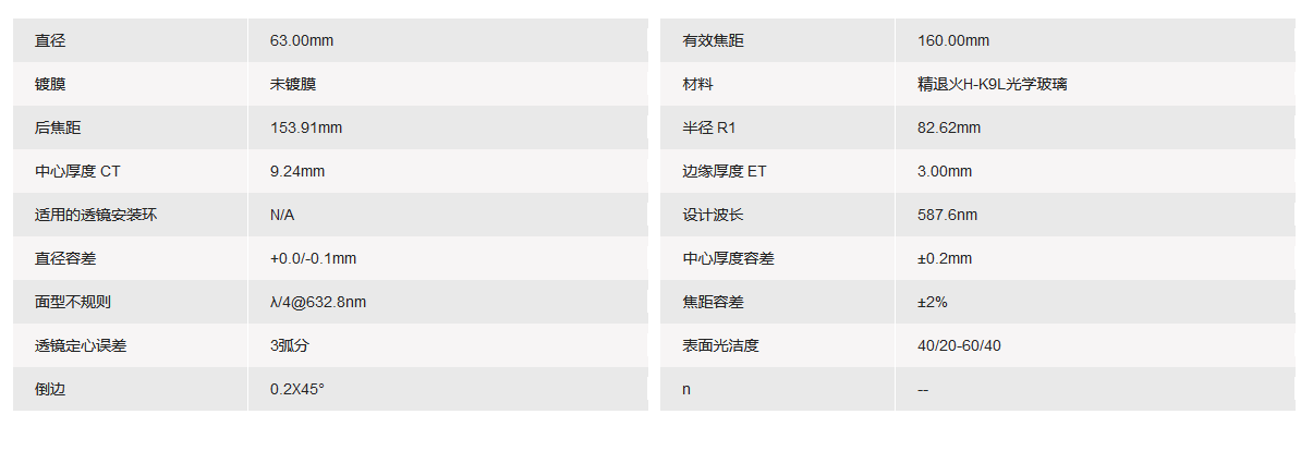 GRAND UNIFIED联合光科 D=63.00mm F=160.00mm K9平凸透镜