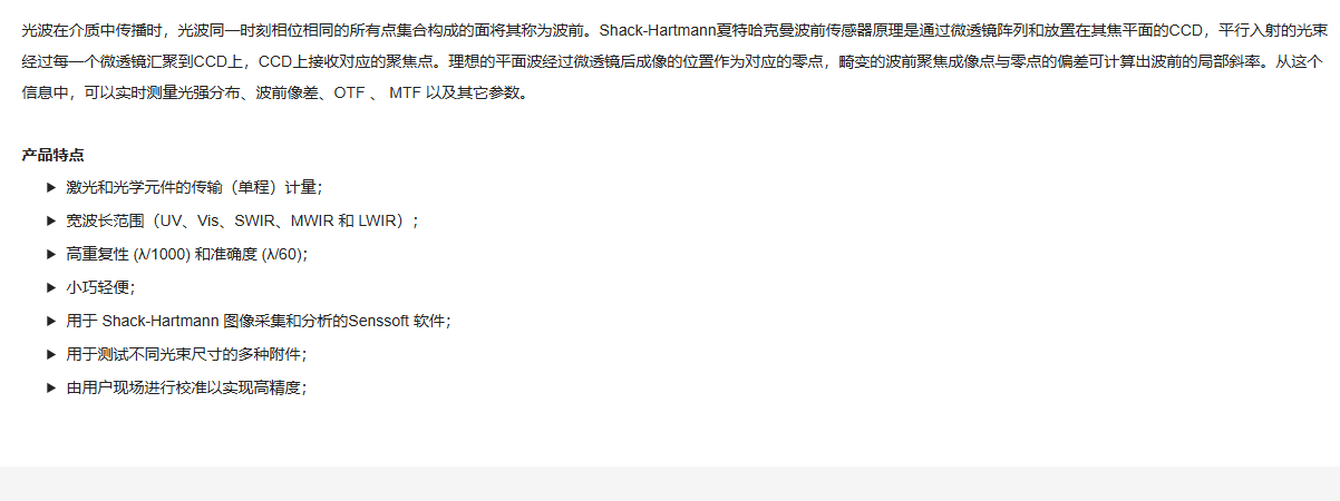 GRAND UNIFIED联合光科 单通道波前传感器 OMI-S-HS