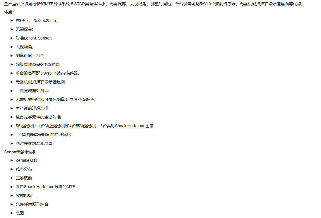 GRAND UNIFIED联合光科 量产型轴外波前分析和MTF测试系统 5-STAR