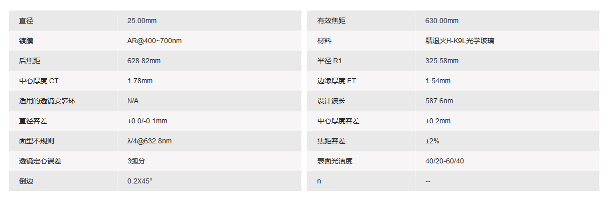 GRAND UNIFIED联合光科 D=25.00mm F=630.00mm VIS K9平凸透镜