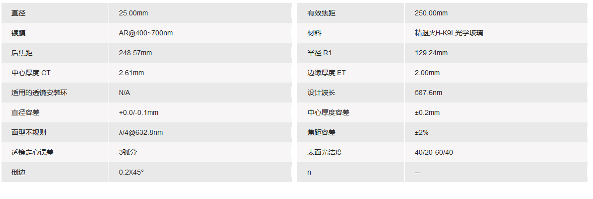GRAND UNIFIED联合光科 D=25.00mm F=250.00mm VIS K9平凸透镜 手机/微信:13682357549 13246646513 QQ:672776553 564600083 1903656788 Email:672776553@qq.com 564600083@qq.com