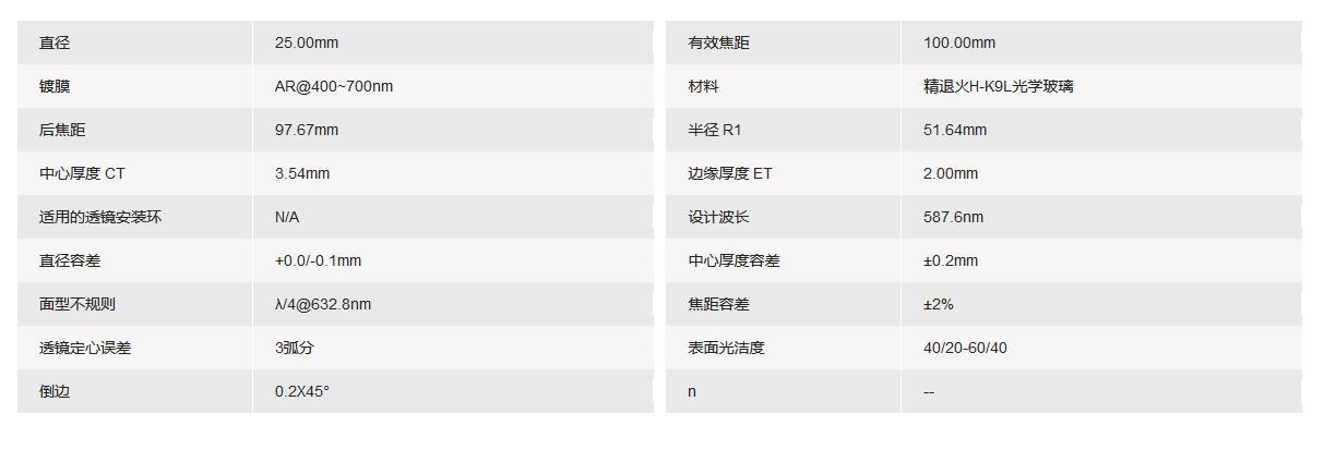 GRAND UNIFIED联合光科 D=25.00mm F=100.00mm VIS K9平凸透镜 手机/微信:13682357549 13246646513 QQ:672776553 564600083 1903656788 Email:672776553@qq.com 564600083@qq.com