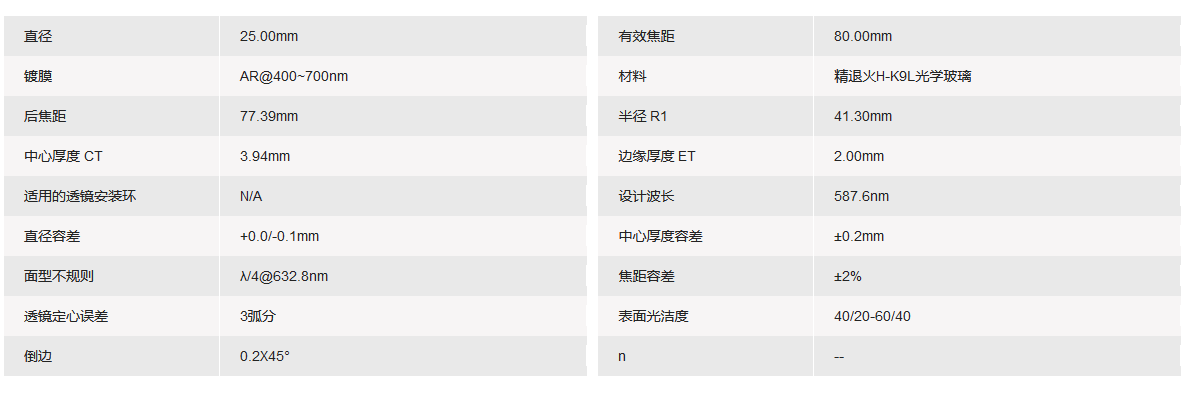GRAND UNIFIED联合光科 D=25.00mm F=80.00mm VIS K9平凸透镜 手机/微信:13682357549 13246646513 QQ:672776553 564600083 1903656788 Email:672776553@qq.com 564600083@qq.com