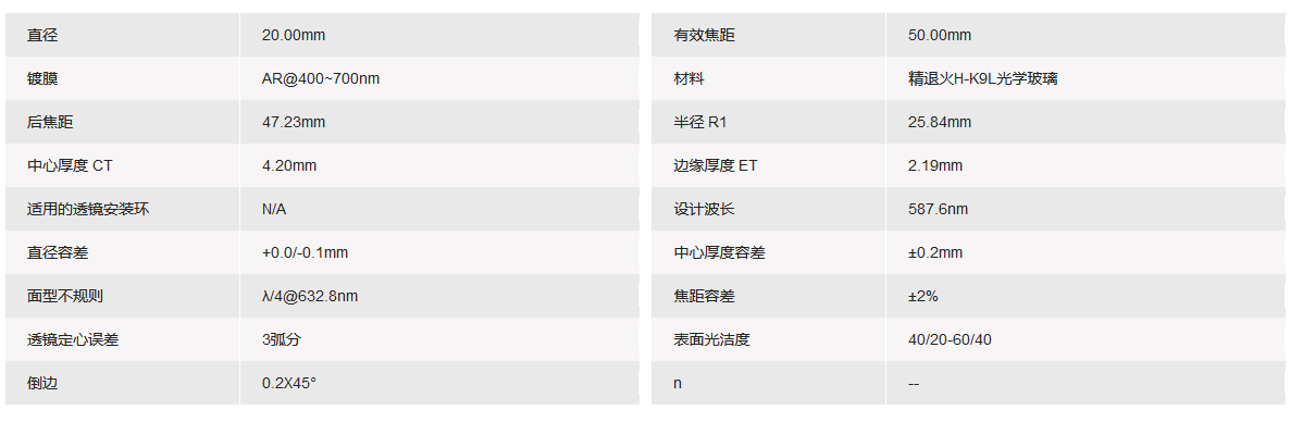 GRAND UNIFIED联合光科 D=20.00mm F=50.00mm VIS K9平凸透镜 手机/微信:13682357549 13246646513 QQ:672776553 564600083 1903656788 Email:672776553@qq.com 564600083@qq.com