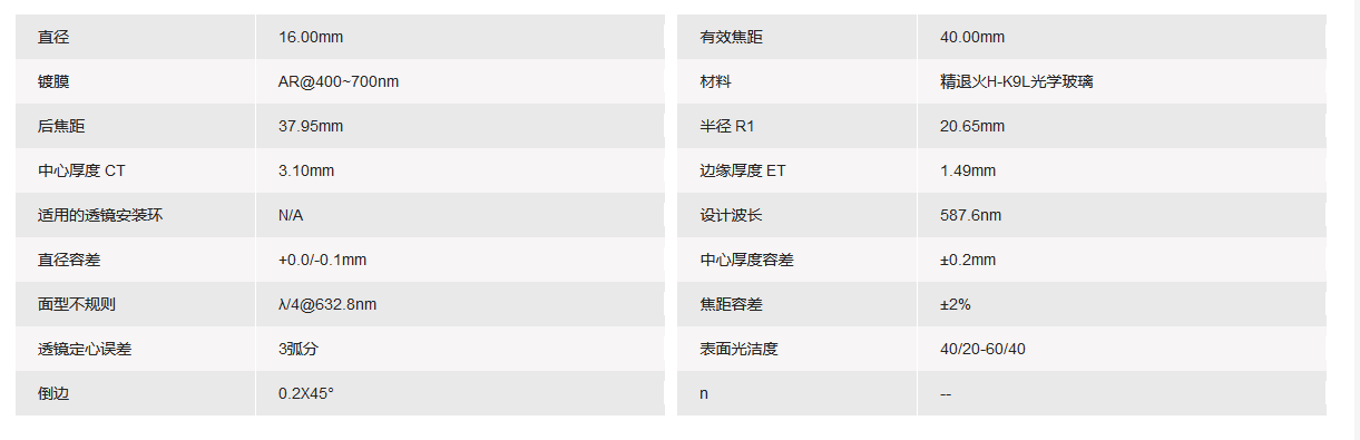 GRAND UNIFIED联合光科 D=16.00mm F=40.00mm VIS K9平凸透镜 手机/微信:13682357549 13246646513 QQ:672776553 564600083 1903656788 Email:672776553@qq.com 564600083@qq.com