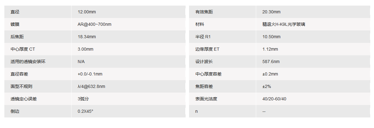 GRAND UNIFIED联合光科 D=12.00mm F=20.30mm VIS K9平凸透镜 手机/微信:13682357549 13246646513 QQ:672776553 564600083 1903656788 Email:672776553@qq.com 564600083@qq.com