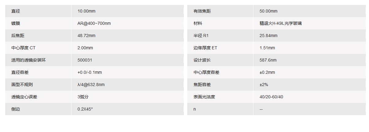 GRAND UNIFIED联合光科 D=10.00mm F=50.00mm VIS K9平凸透镜 手机/微信:13682357549 13246646513 QQ:672776553 564600083 1903656788 Email:672776553@qq.com 564600083@qq.com