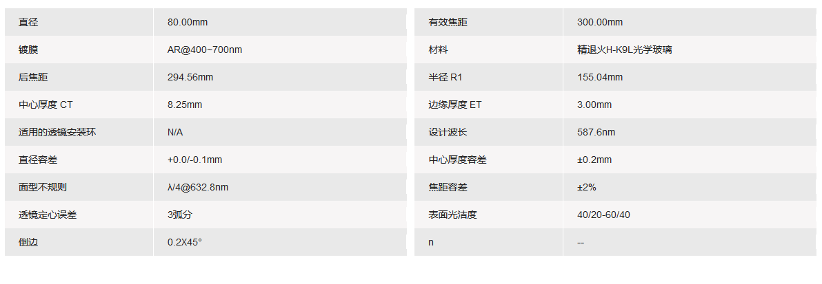 GRAND UNIFIED联合光科 D=80.00mm F=300.00mm VIS K9平凸透镜 手机/微信:13682357549 13246646513 QQ:672776553 564600083 1903656788 Email:672776553@qq.com 564600083@qq.com