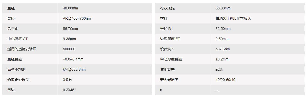 GRAND UNIFIED联合光科 D=40.00mm F=63.00mm VIS K9平凸透镜 手机/微信:13682357549 13246646513 QQ:672776553 564600083 1903656788 Email:672776553@qq.com 564600083@qq.com