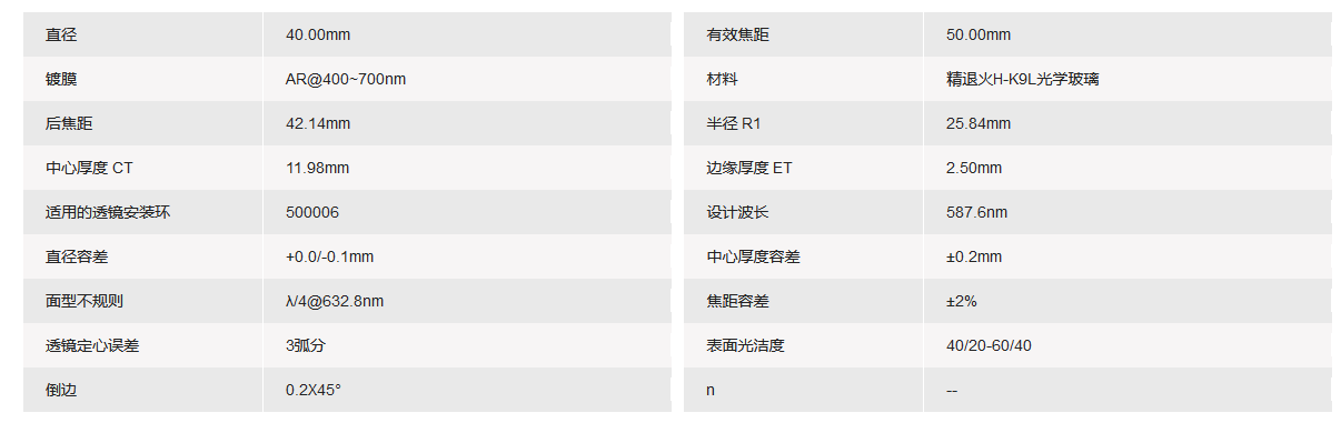 GRAND UNIFIED联合光科 D=40.00mm F=50.00mm VIS K9平凸透镜 手机/微信:13682357549 13246646513 QQ:672776553 564600083 1903656788 Email:672776553@qq.com 564600083@qq.com