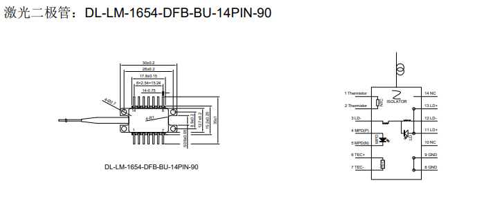DIMENSION维度 DL-LM-1654-DFB-BU-14PIN-80 DFB激光二极管