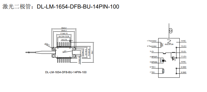 DIMENSION维度 DL-LM-1654-DFB-BU-14PIN-90 DFB激光二极管