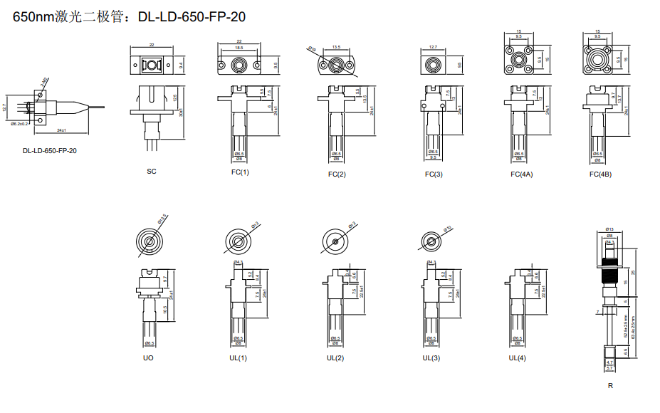 DIMENSION维度 DL-LD-650-FP-20 FP激光二极管