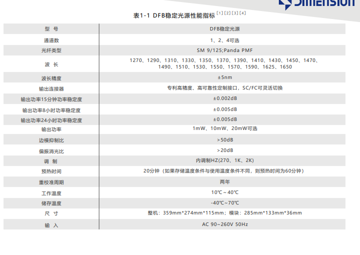 DIMENSION维度 DL-SLS-FP-125-850-5mW-2x2-FA SLS稳定光源模块