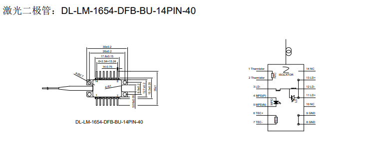 DIMENSION维度 DL-LM-1654-DFB-BU-14PIN-40 DFB激光二极管