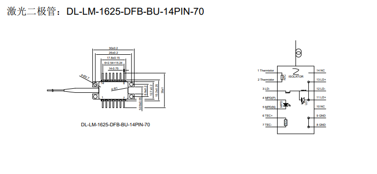 DIMENSION维度 DL-LM-1625-DFB-BU-14PIN-70 DFB激光二极管