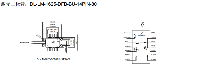 DIMENSION维度 DL-LM-1625-DFB-BU-14PIN-80 DFB激光二极管
