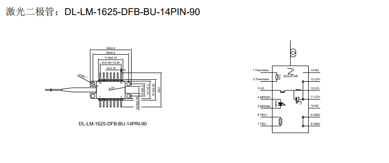 DIMENSION维度 DL-LM-1625-DFB-BU-14PIN-90 DFB激光二极管