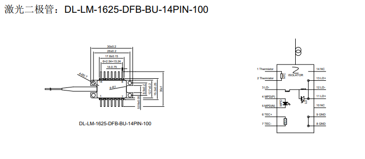 DIMENSION维度 DL-LM-1625-DFB-BU-14PIN-100 DFB激光二极管 手机/微信:13682357549 13246646513 QQ:672776553 564600083 1903656788 Email:672776553@qq.com 564600083@qq.com