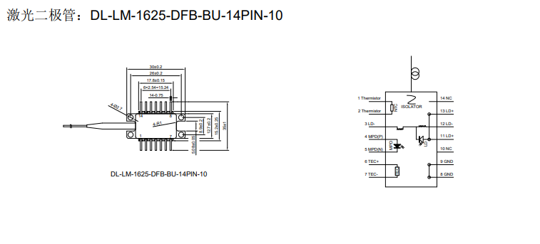 DIMENSION维度 DL-LM-1625-DFB-BU-14PIN-10 DFB激光二极管
