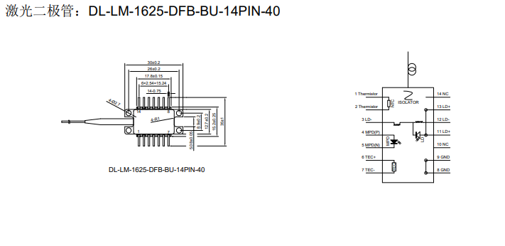 DIMENSION维度 DL-LM-1625-DFB-BU-14PIN-40 DFB激光二极管