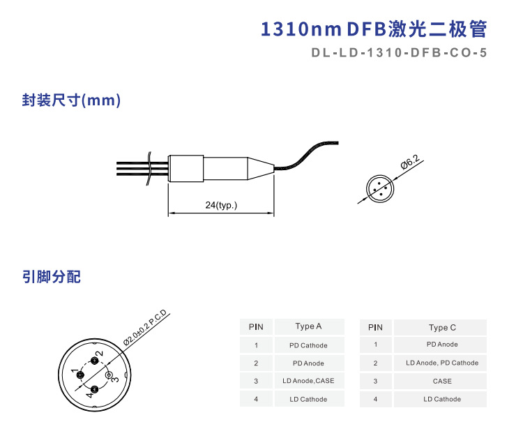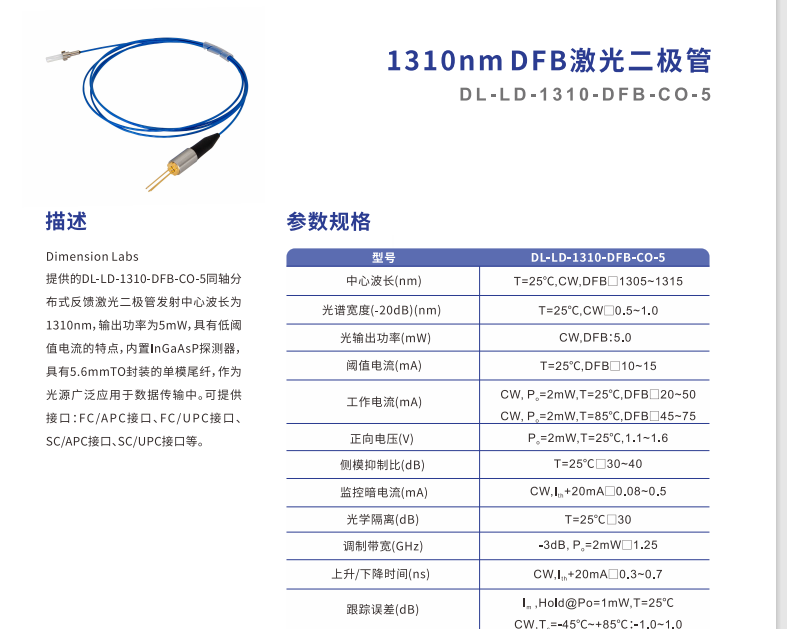 DIMENSION维度 DL-LD-1310-DFB-CO-5 DFB激光二极管 手机/微信:13682357549 13246646513 QQ:672776553 564600083 1903656788 Email:672776553@qq.com 564600083@qq.com
