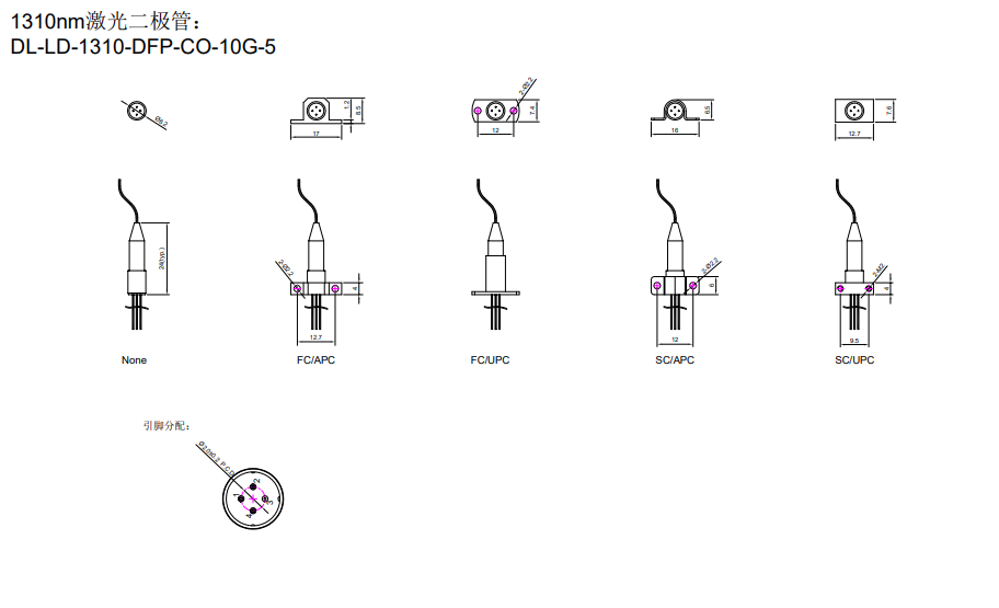 DIMENSION维度 DL-LD-1310-DFB-CO-10G-5 DFB激光二极管 手机/微信:13682357549 13246646513 QQ:672776553 564600083 1903656788 Email:672776553@qq.com 564600083@qq.com
