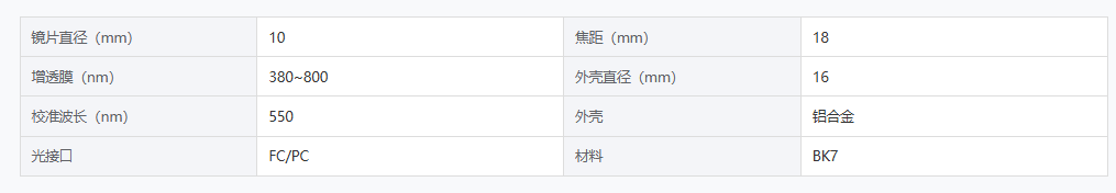 DIMENSION维度 DL-FC101001811 光纤准直器